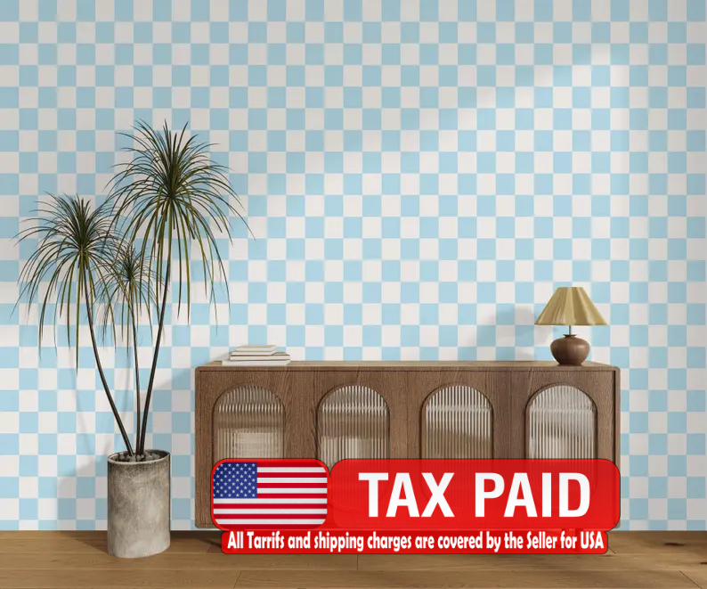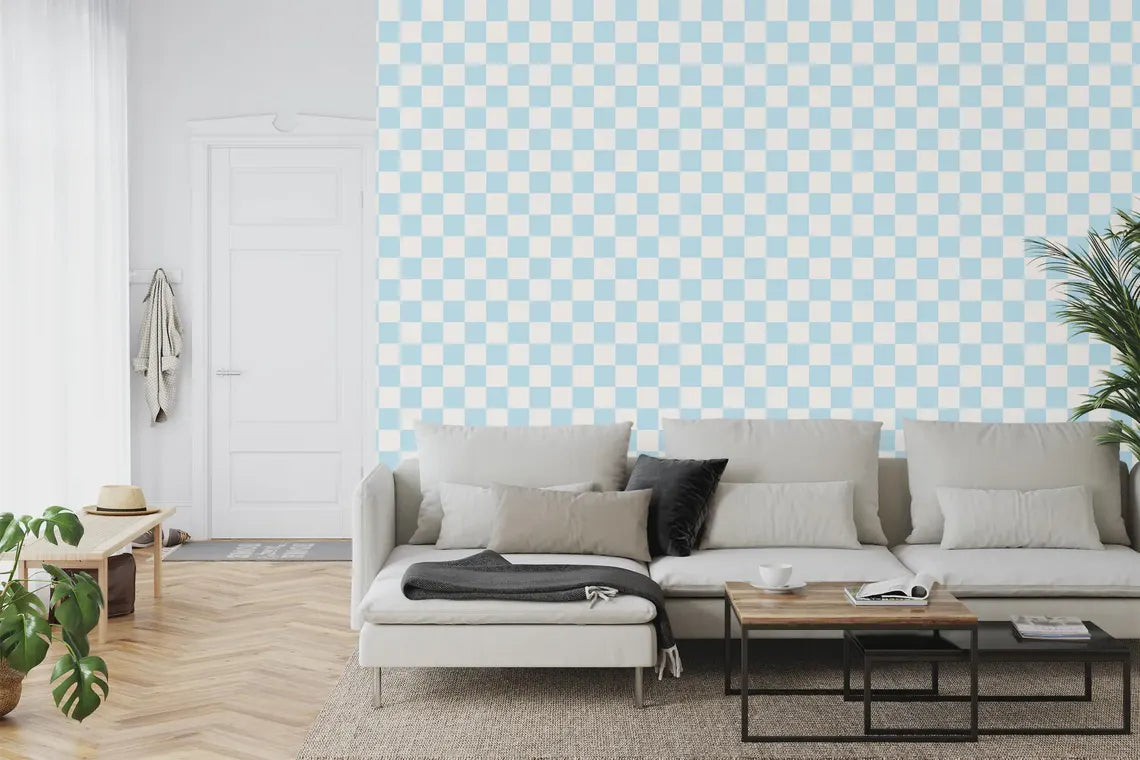 Light Blue Off White Checkered Wallpaper Wall Decal, Peel and Stick