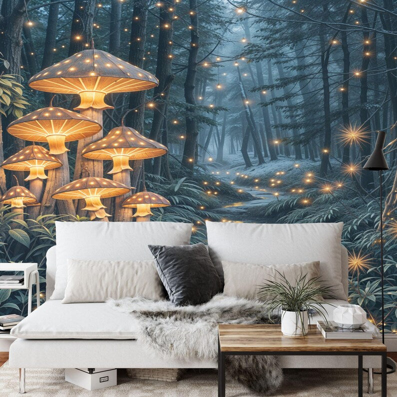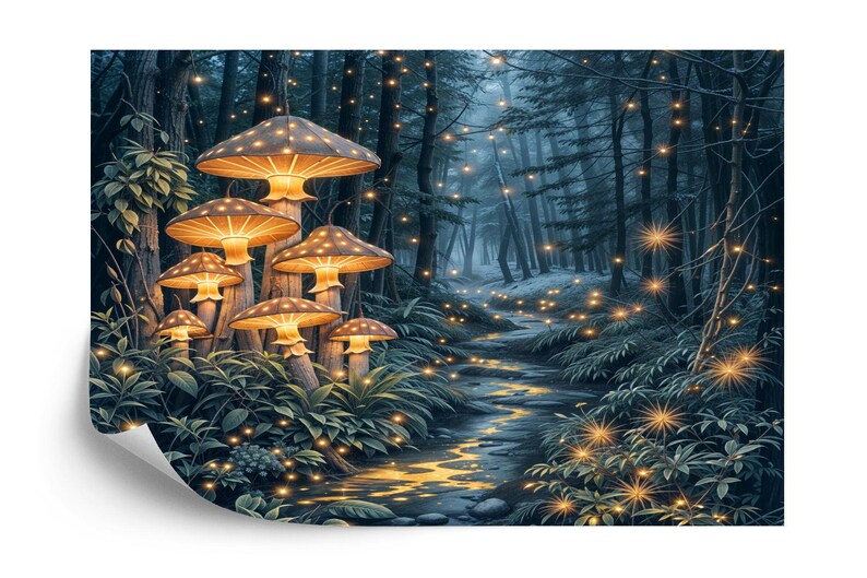 Magical Forest Wallpaper Mural, Fairytale Night Scene, Peel and Stick Wall Decal