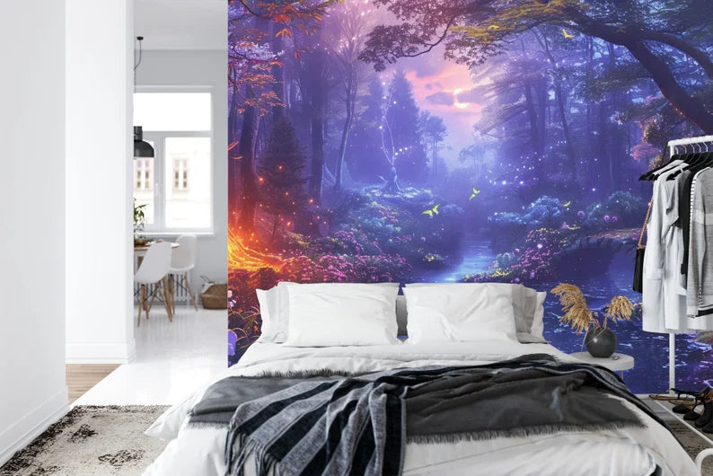 Magical Nighttime Forest Mural, Peel and Stick Wallpaper