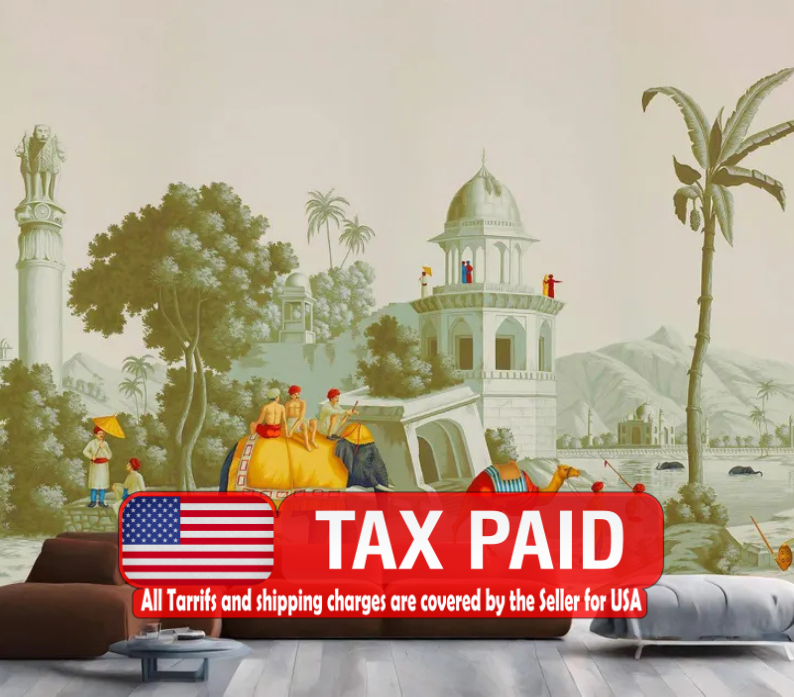 Mughal Elephant Mural, India Home Decor, Peel and Stick Wallpaper