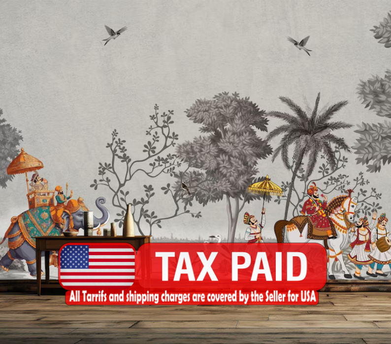 Mughal Elephant Wallpaper Mural, Peel and Stick, India Home Decor
