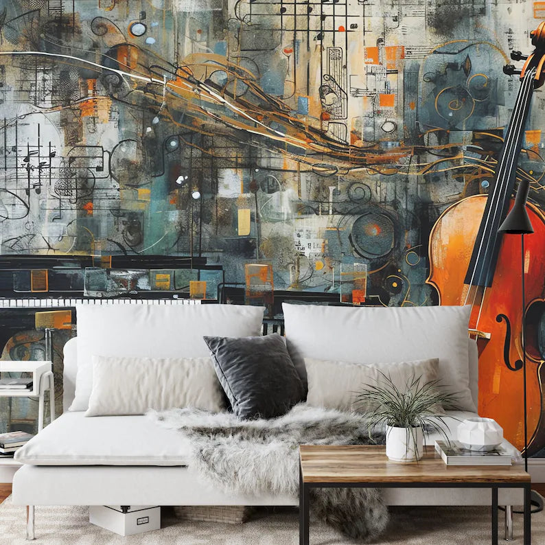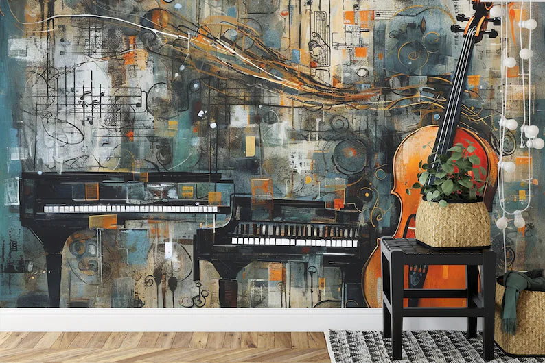 Musical Instruments Wallpaper Mural, AI Generated Art, Peel and Stick Decal