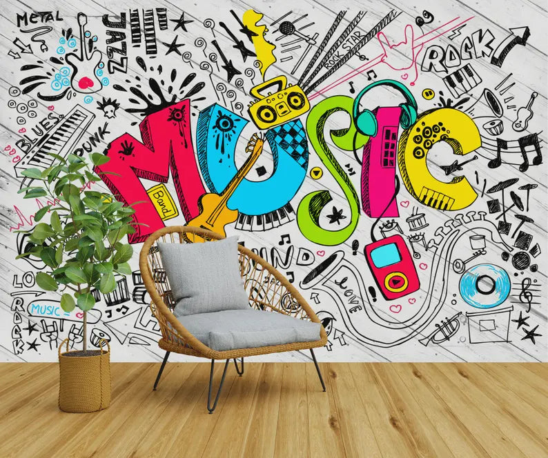 Musical Instruments Wallpaper Mural, AI Generated Art, Peel and Stick Decal