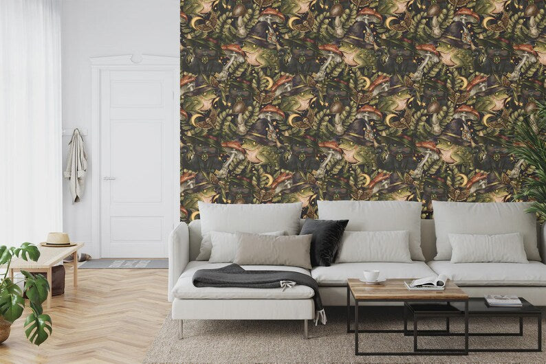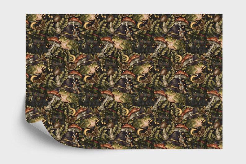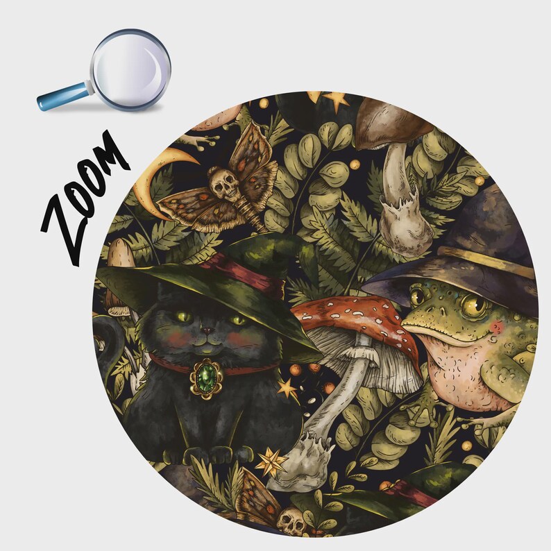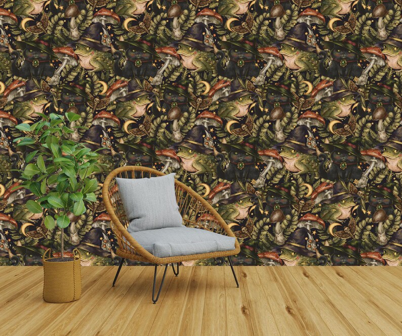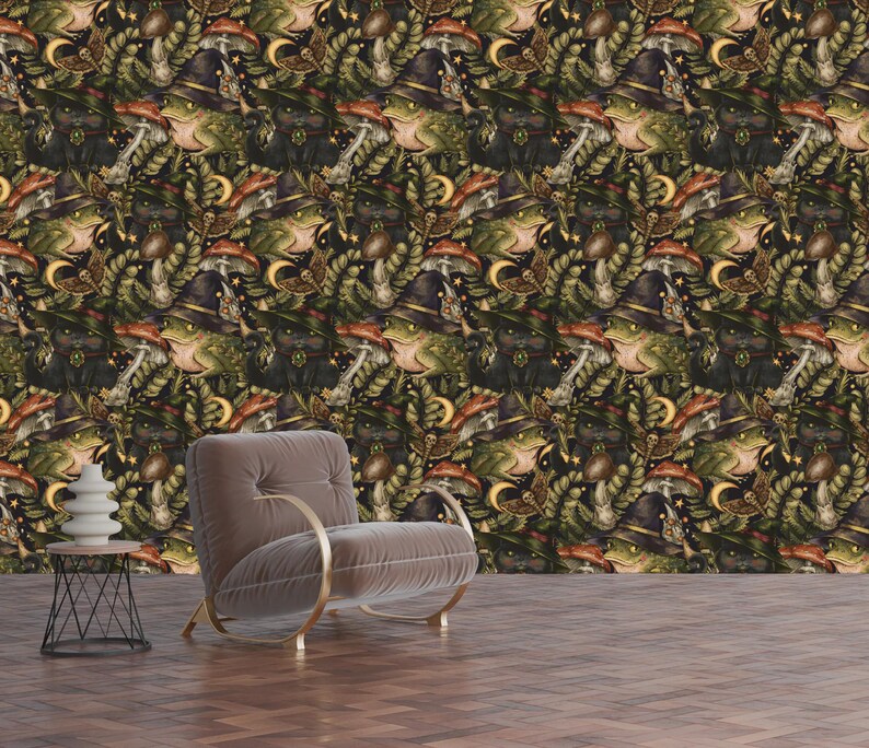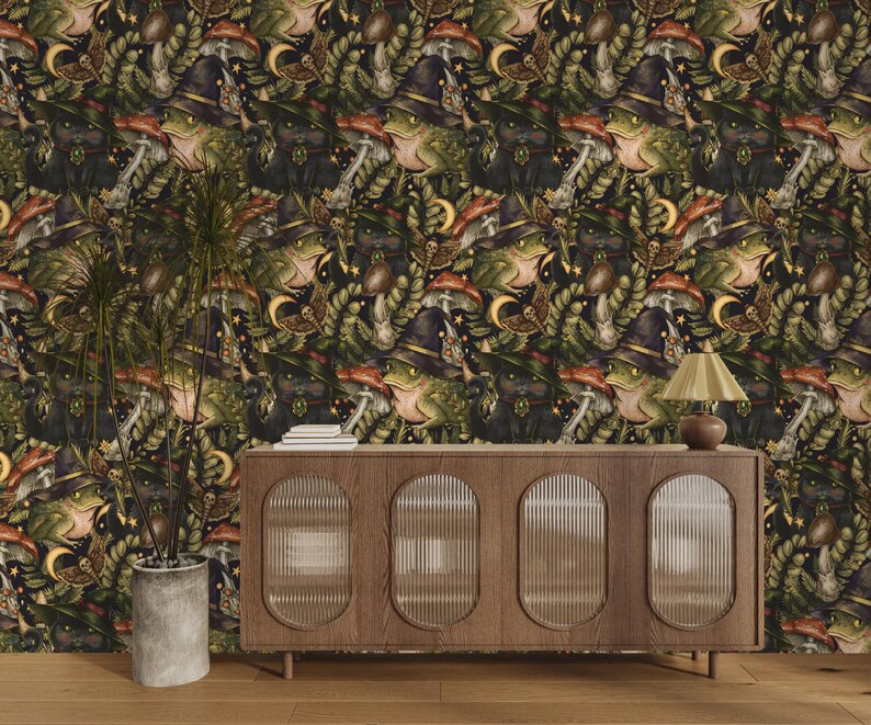 Mystical Toad and Black Cat Art Print Wallpaper, Peel and Stick Pattern