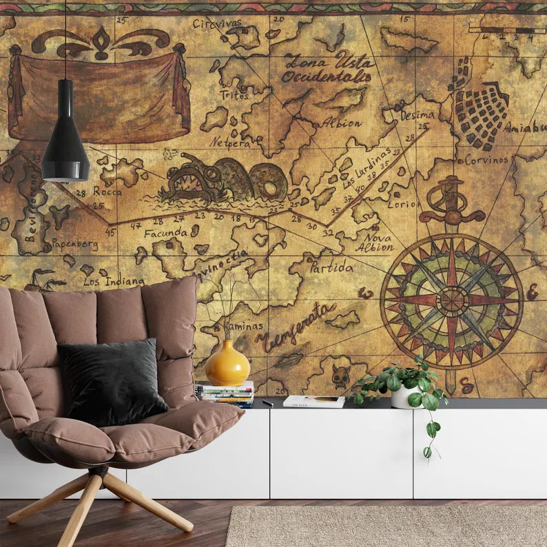 Nautical Map Mural, Captain's Log, Peel and Stick Wallpaper