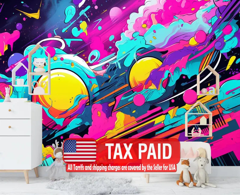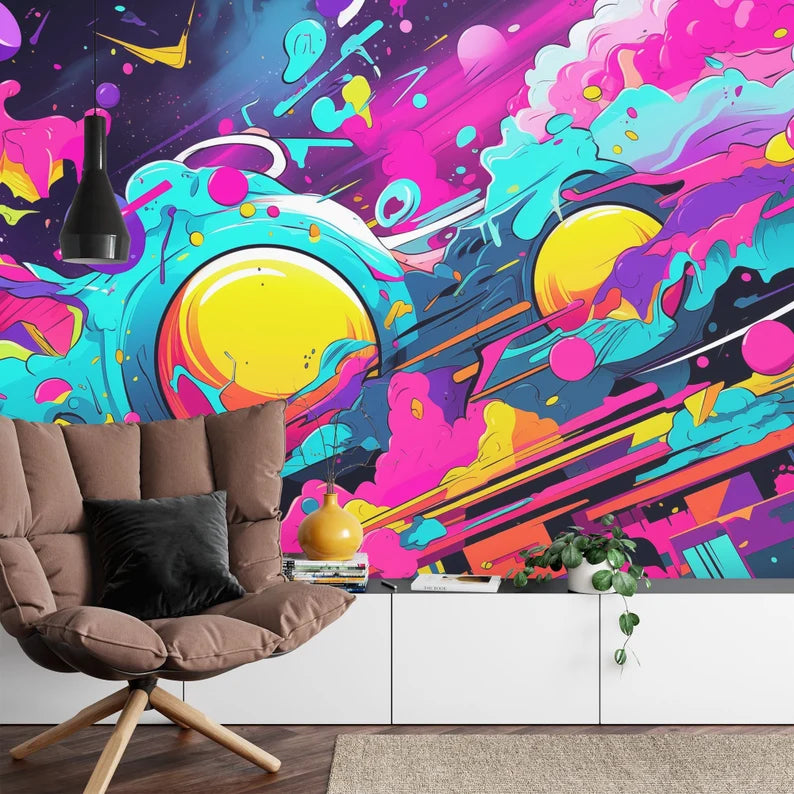 Neon Graffiti Wallpaper Mural, Abstract Peel and Stick Wall Decal