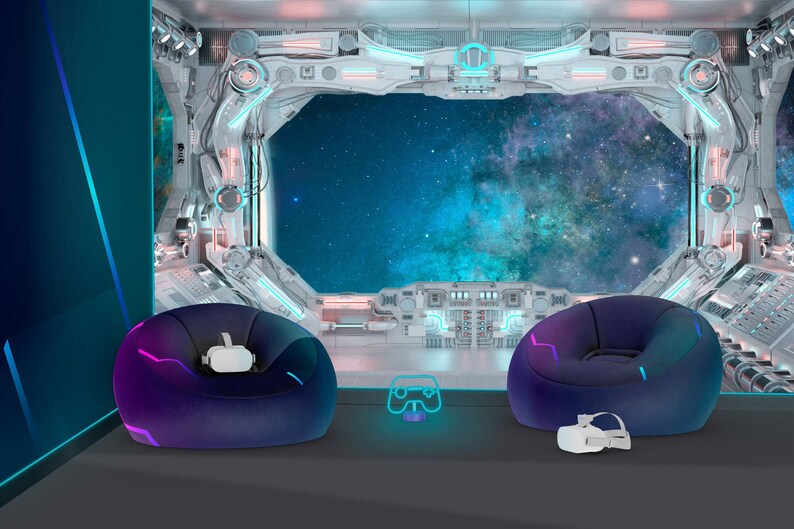 Spaceship Window Wall Mural, Outer Space Stars Decor, Peel and Stick Wallpaper