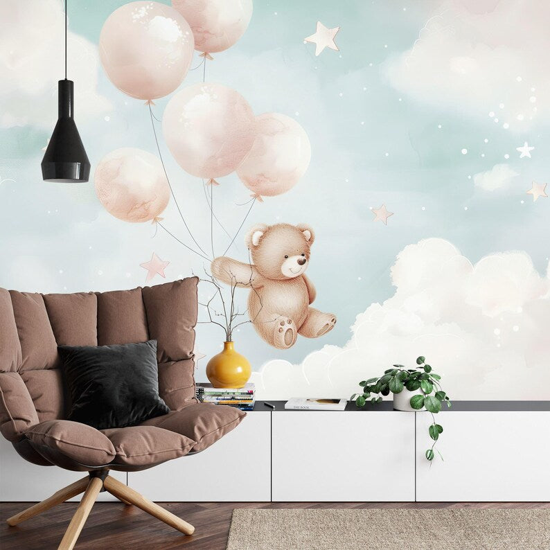 Pastel Bear Balloons Nursery Wallpaper Mural