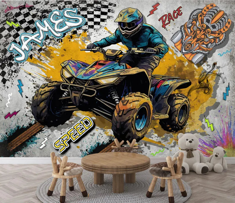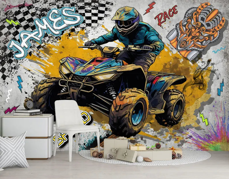 Personalized Quad Bike Wall Mural, Teenage ATV Wallpaper, Peel and Stick Decal
