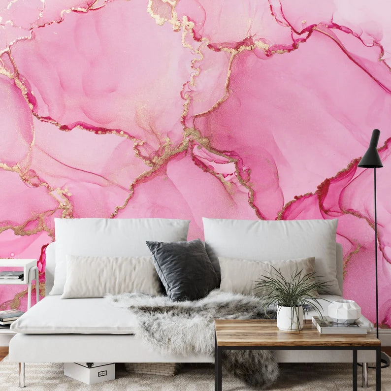 Pink Marble Watercolor Wallpaper Mural, Easy-Install