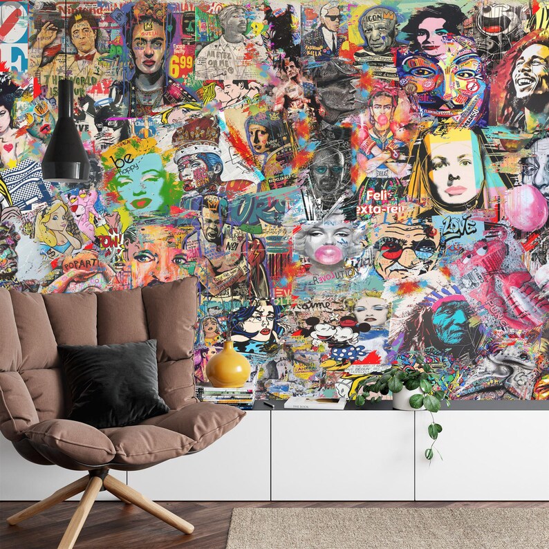 Pop Art Graffiti Mural: Customizable Urban Street Style Wallpaper