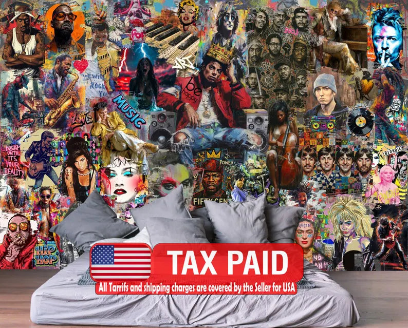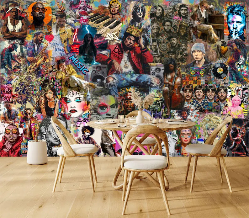 Pop Art Music Stars Graffiti Mural, Urban Wall Decor