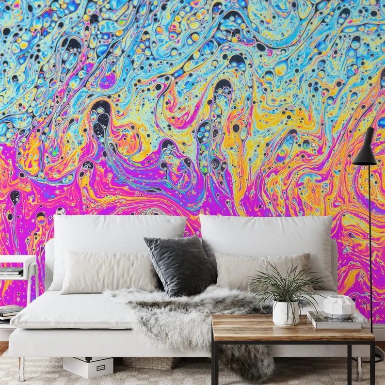 Psychedelic Soap Bubble Wall Mural – Colorful Abstract Peel and Stick Wallpaper