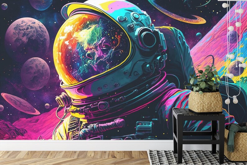 Psychedelic Space Wallpaper Mural, Kids Room Decor, Peel and Stick Wall Decal