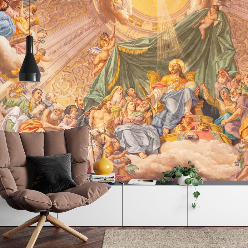Renaissance Christ the King Fresco, Art Print Wallpaper Mural Peel & Stick