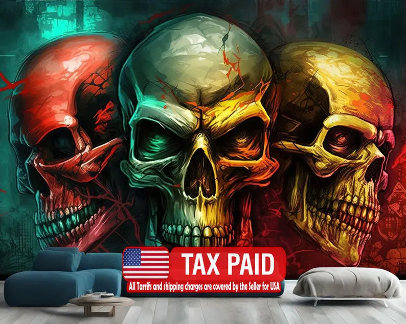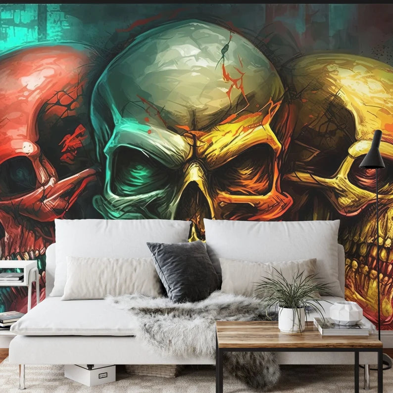Skull Graffiti Wallpaper, Abstract Street Art Mural, Peel and Stick
