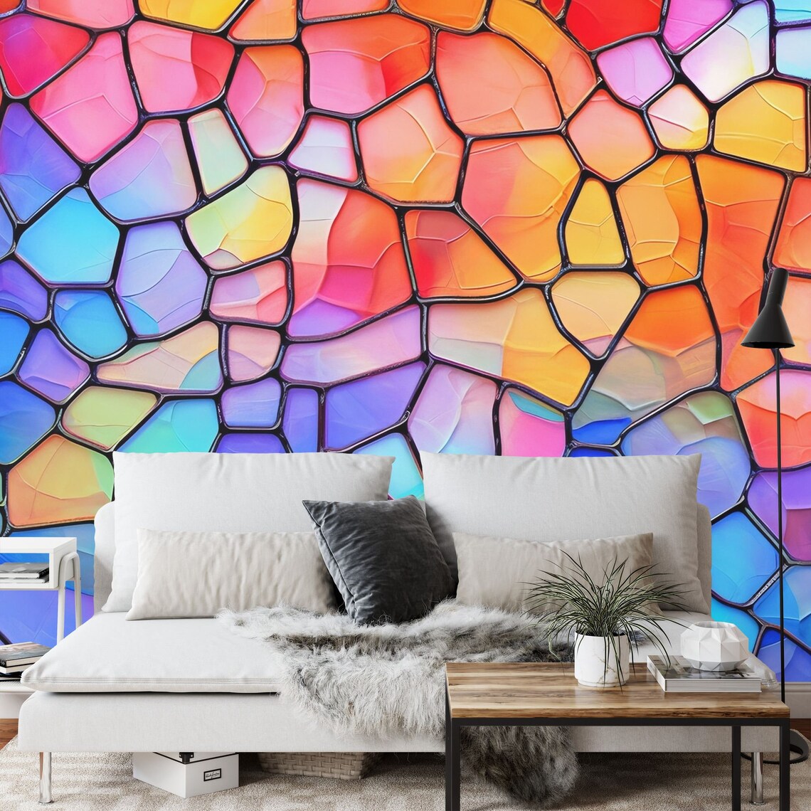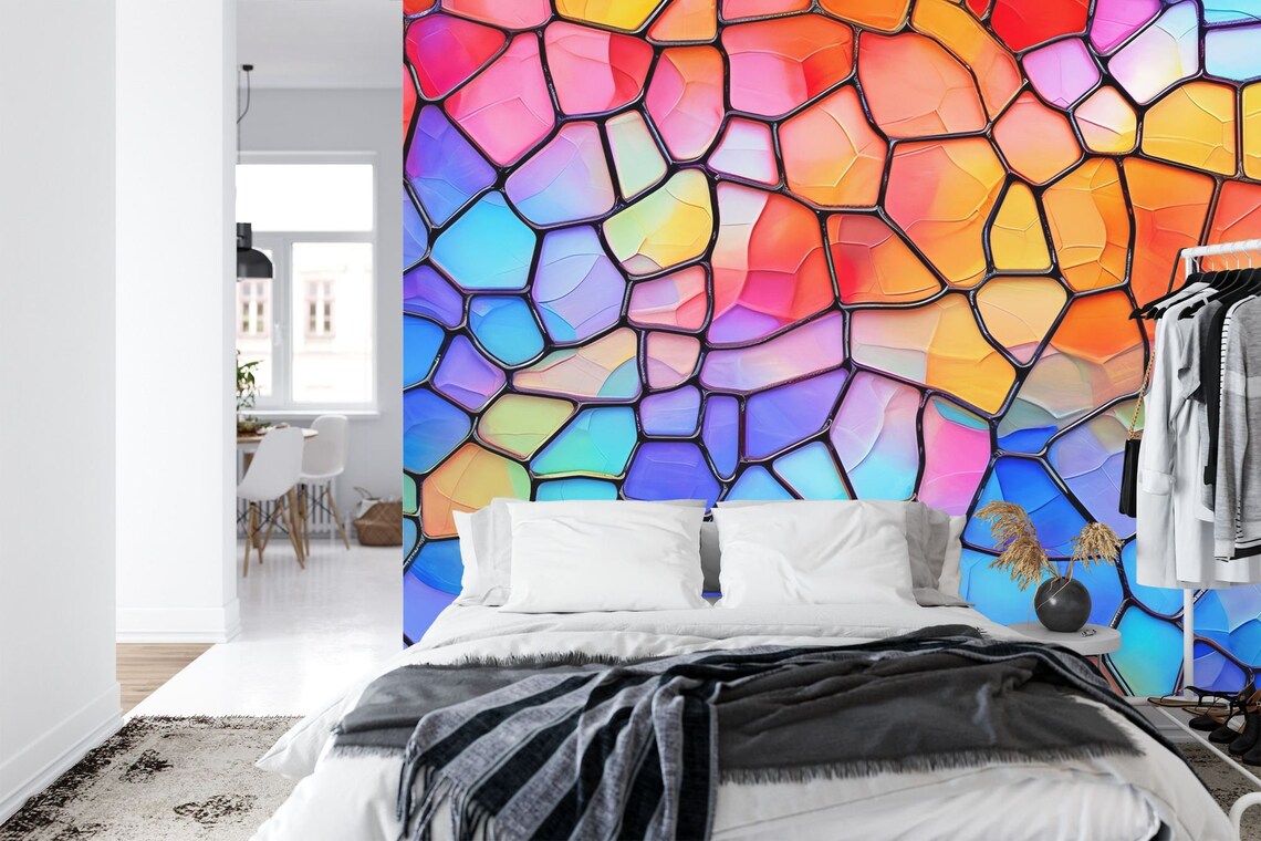 Stained Glass Window Mural, Colorful Abstract Art, Peel and Stick Wallpaper