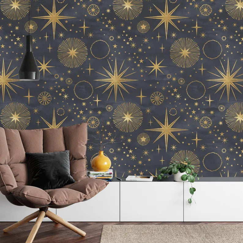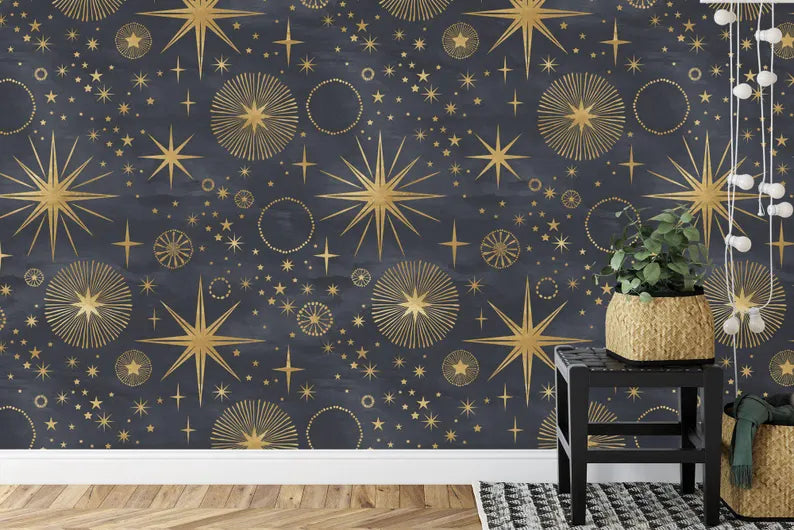 Starry Night Peel and Stick Wallpaper, Modern Celestial Mural
