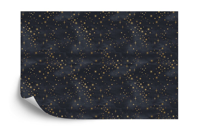 Starry Night Wallpaper Mural, Shining Stars, Black and Gold, Peel and Stick