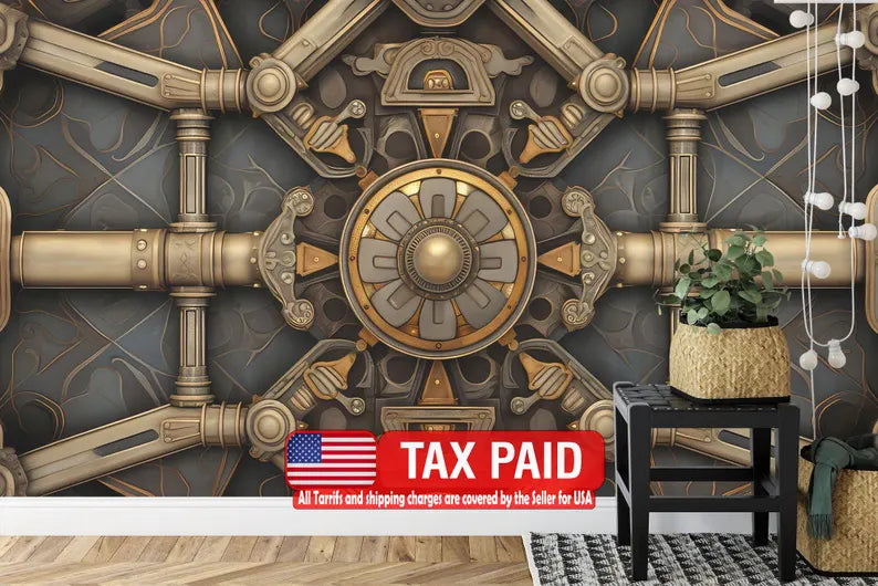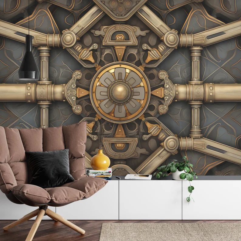 Steampunk Mechanical Wallpaper Mural, Peel and Stick Wall Decal