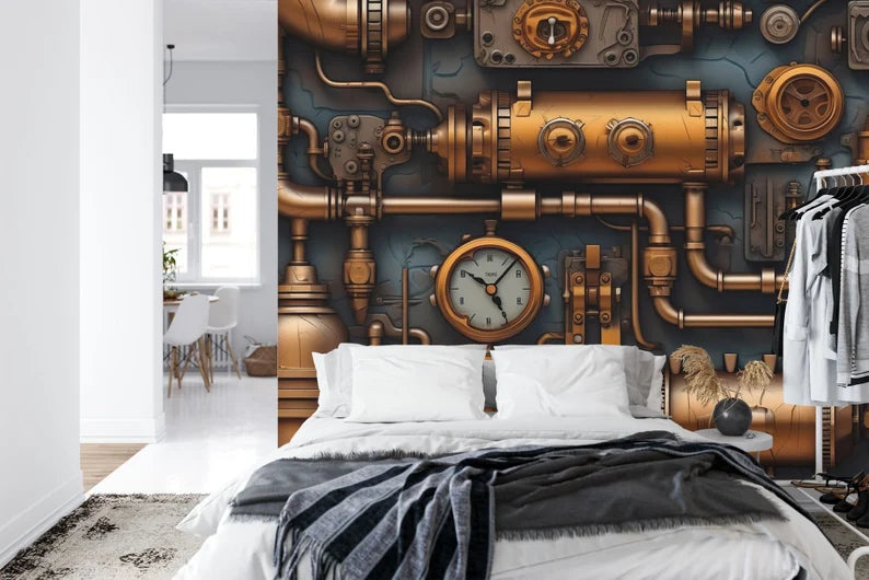Steampunk Pipes Wallpaper Mural, Removable Peel and Stick Decal