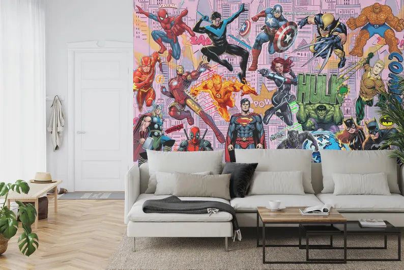 Superhero Comic Book Wallpaper Mural, Kids Room Decor