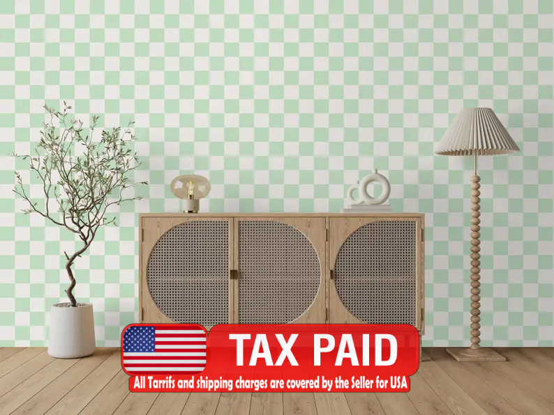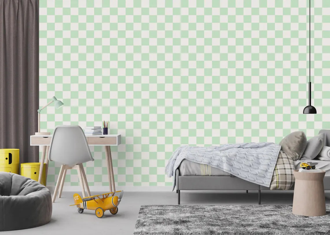 Tea Green Off White Checkered Wallpaper Wall Decal, Peel and Stick
