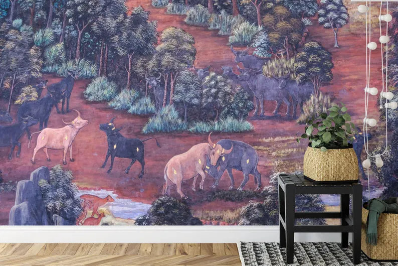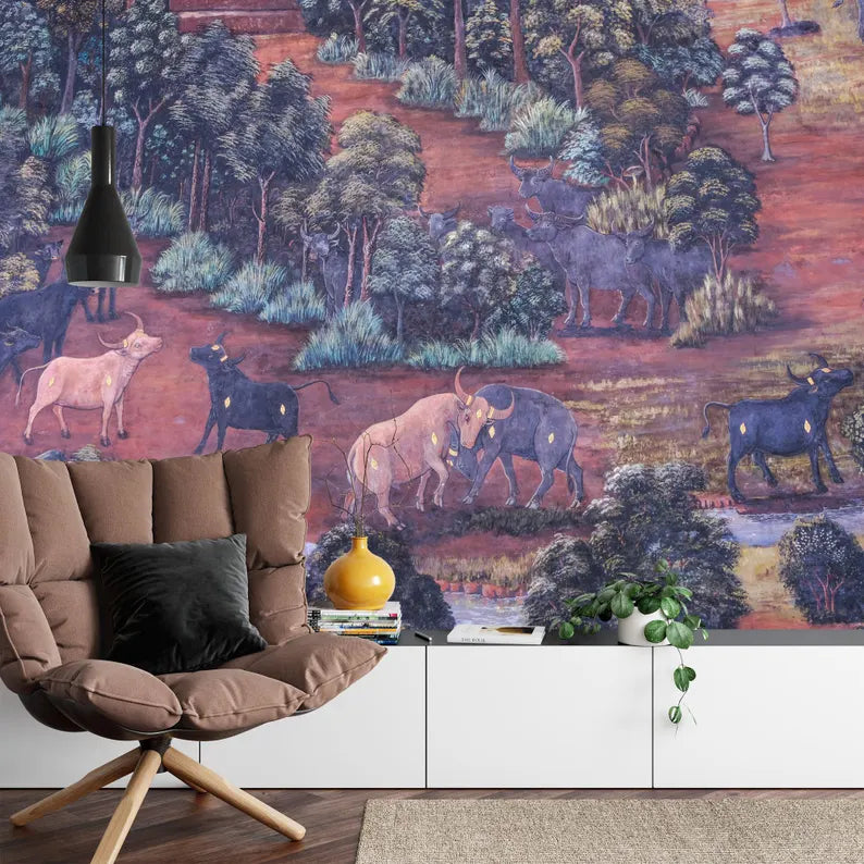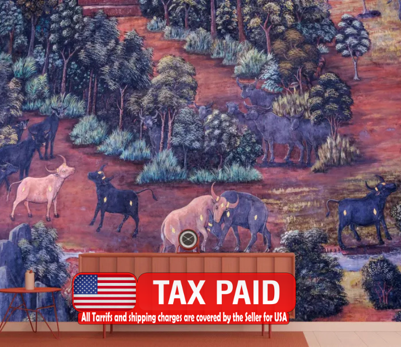Thai Style Painting Art Mural, Peel and Stick Wallpaper