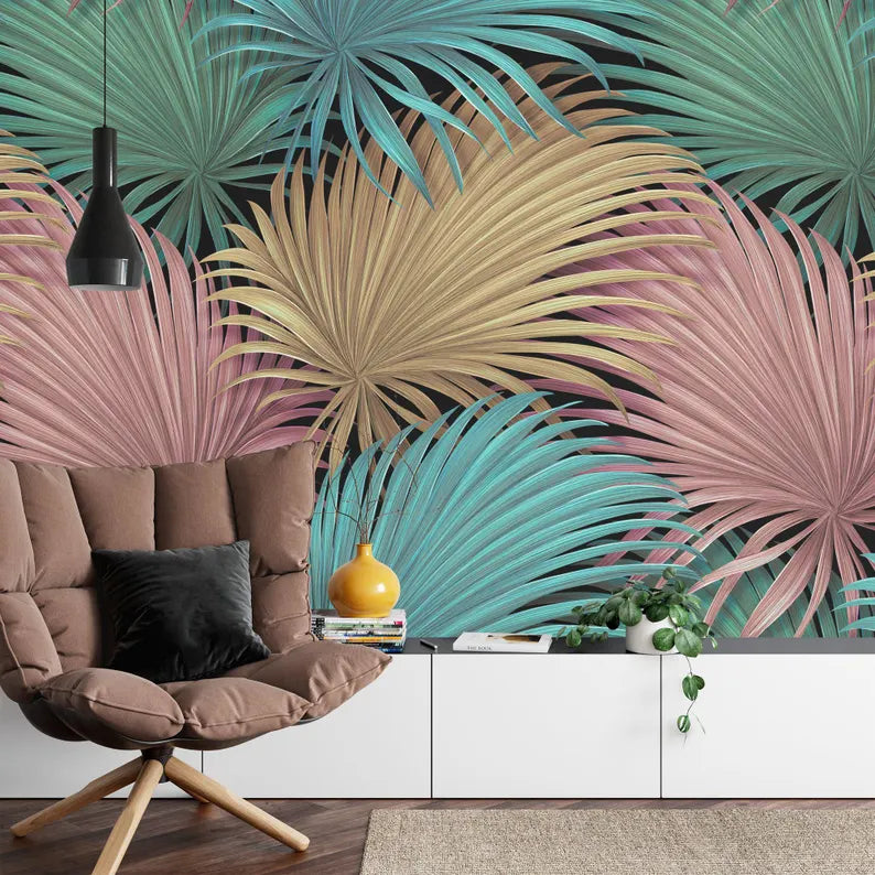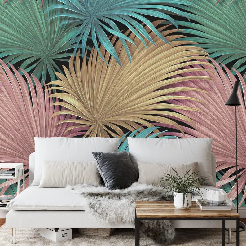 Tropical Palm Leaves Wallpaper Mural, Removable Peel and Stick