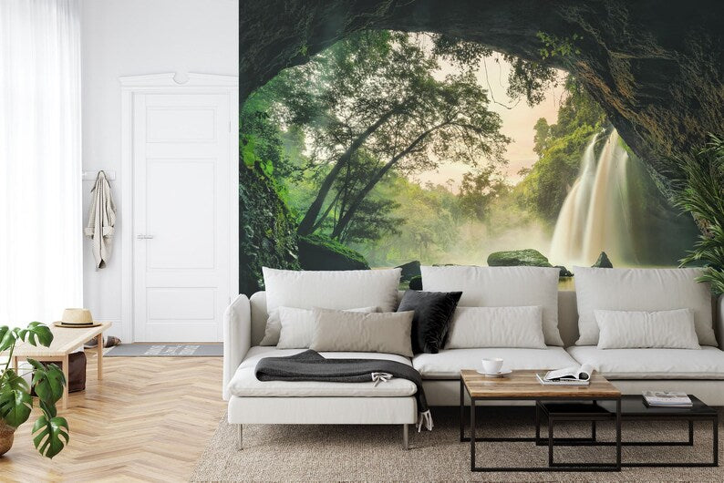 Tropical Waterfall Mural, Khao Yai Forest, Peel and Stick Wallpaper