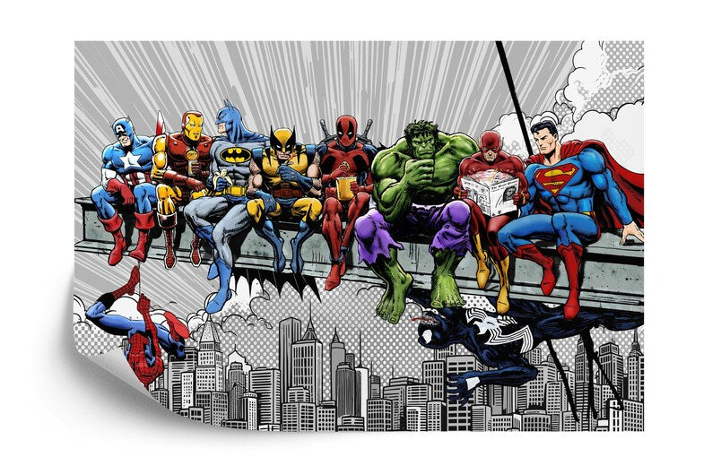 Vintage Comic Superhero Cityscape Wall Mural, Kids Room (Removable/Peel & Stick)