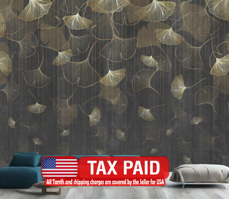 Vintage Ginkgo Leaf Wallpaper Mural, Grunge Art Print, Peel and Stick