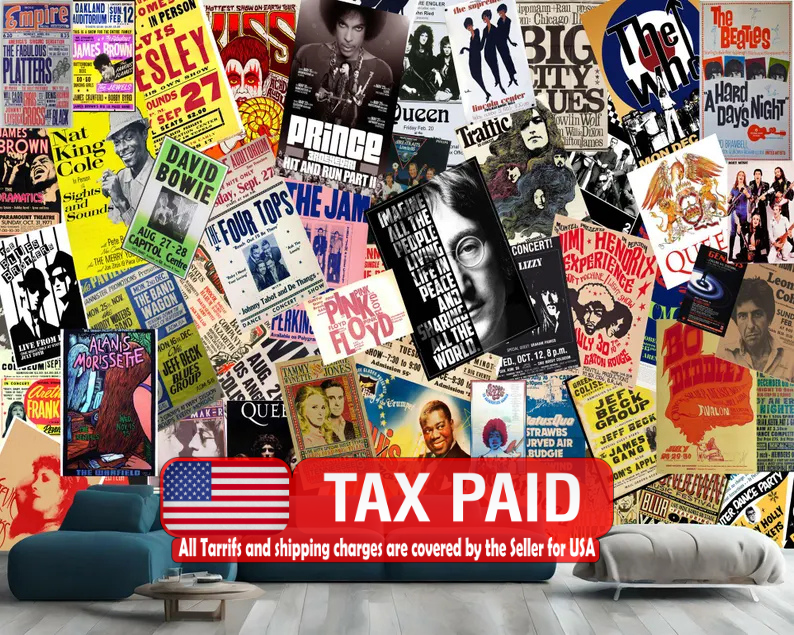 Vintage Rock Concert Posters Wallpaper Mural - Peel and Stick