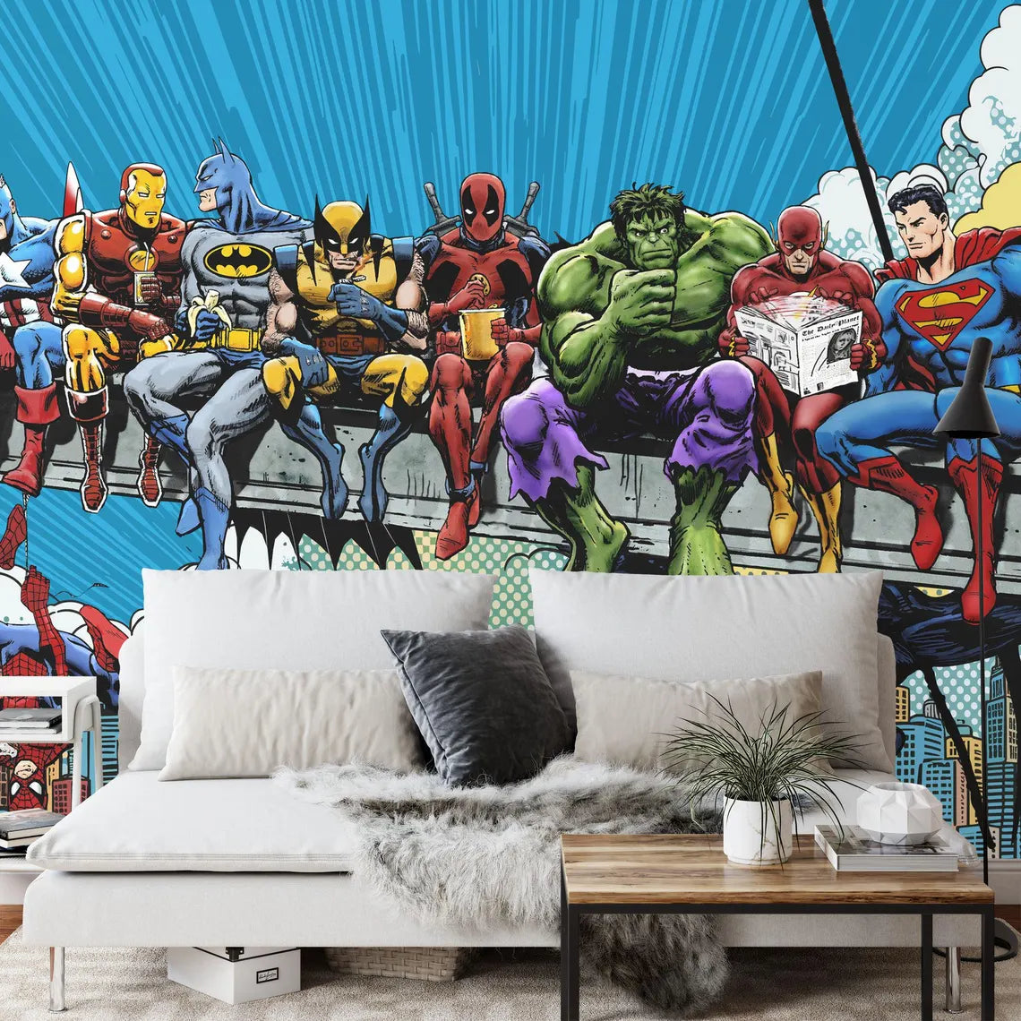 Vintage Superhero Comic Mural, Washable Kids Room Wallpaper