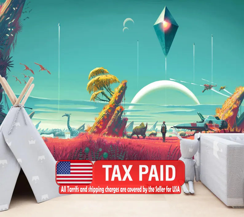 Wallpaper, Creature Spaceship Video Game Wall Mural