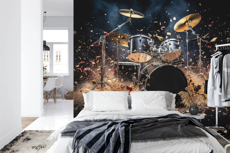 Wallpaper, Drum Set 3D Illustration Wall Decal, Music Room Decor