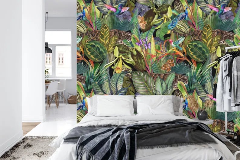 Watercolor Tropical Jungle Wallpaper Mural, Peel and Stick